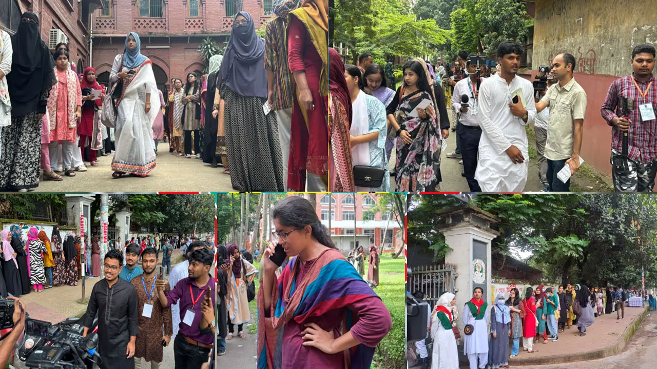 মঙ্গলবার সকাল ৮টায় ভোট শুরুর আগে থেকেই ভোটাররা আসতে শুরু করেন কেন্দ্রগুলোতে। সকাল ১০টার দিকে ডাকসু নির্বাচনের আটটি কেন্দ্রেই ভোট দেয়ার জন্য ভোটারদের দীর্ঘ সারি দেখা যাচ্ছে।