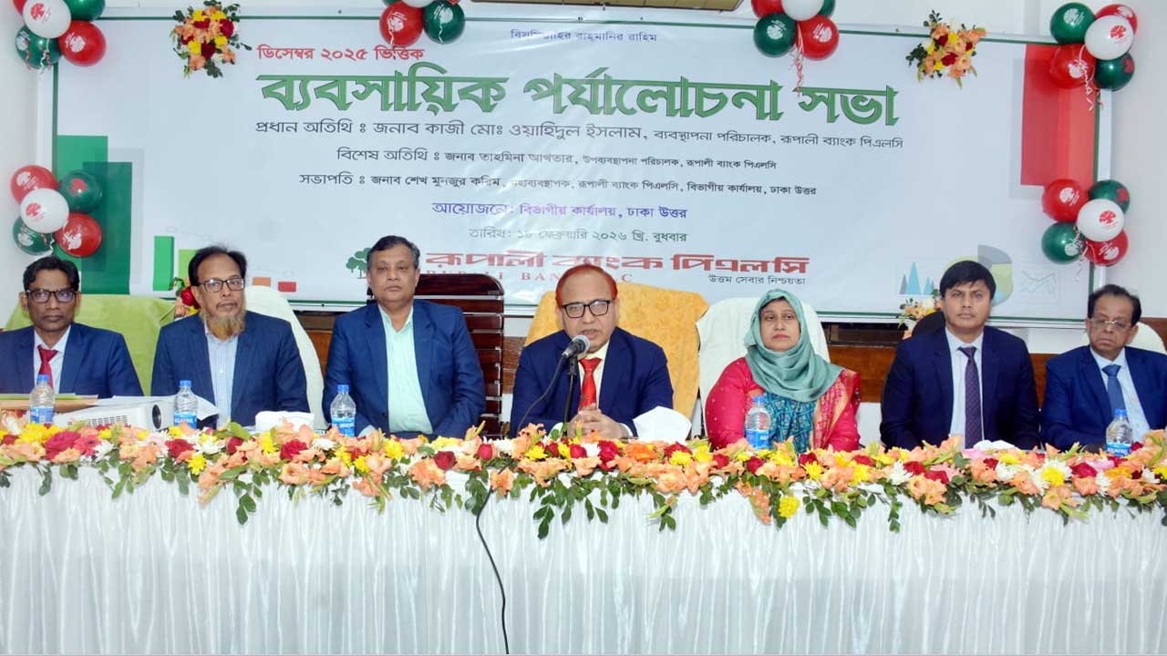 রূপালী ব্যাংক পিএলসি'র ঢাকা উত্তর বিভাগীয় কার্যালয়ের উদ্যোগে ব্যবসায়িক পর্যালোচনা সভা ২০২৬ অনুষ্ঠিত হয়েছে।