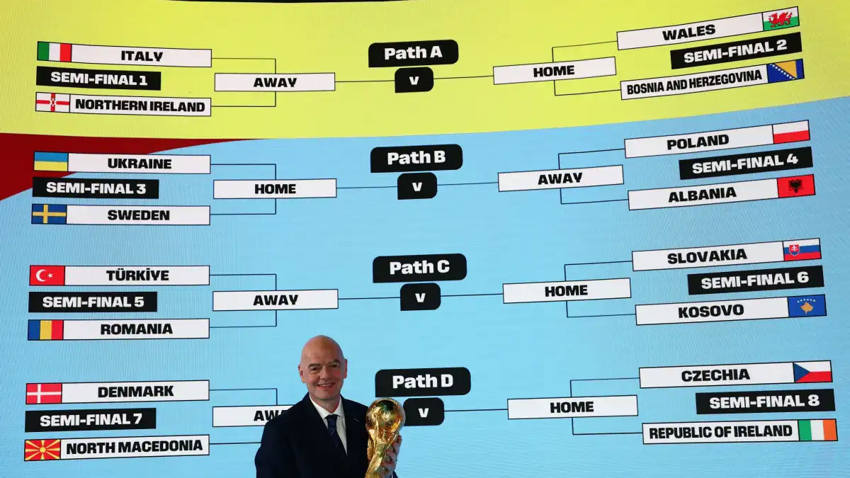 ২০২৬ বিশ্বকাপকে সামনে রেখে ইউরোপিয়ান প্লে-অফের সেমিফাইনালে চারবারের বিশ্ব চ্যাম্পিয়ন ইতালির প্রতিপক্ষ নর্দার আয়ারল্যান্ড। গতকাল প্লে-অফের ড্র অনুষ্ঠিত হয়েছে।